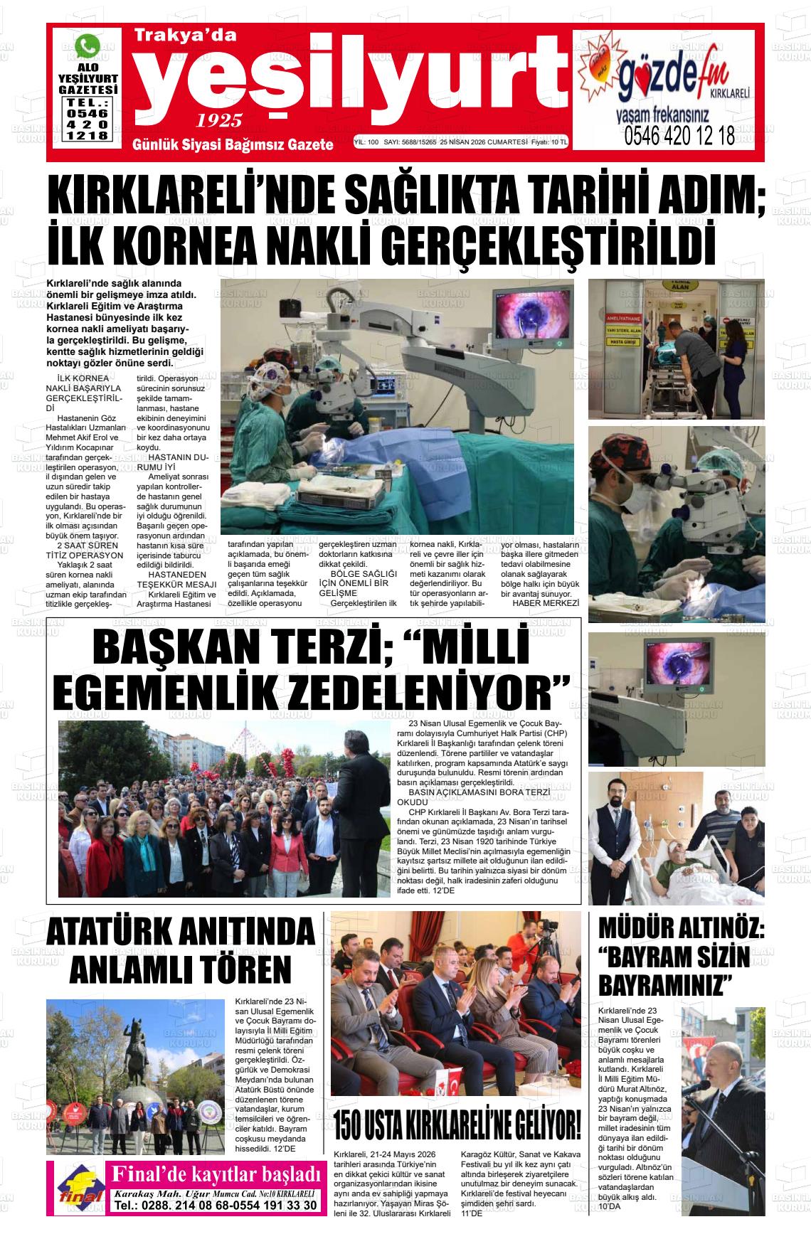 22 Nisan 2026, Çarşamba Günü Manşeti